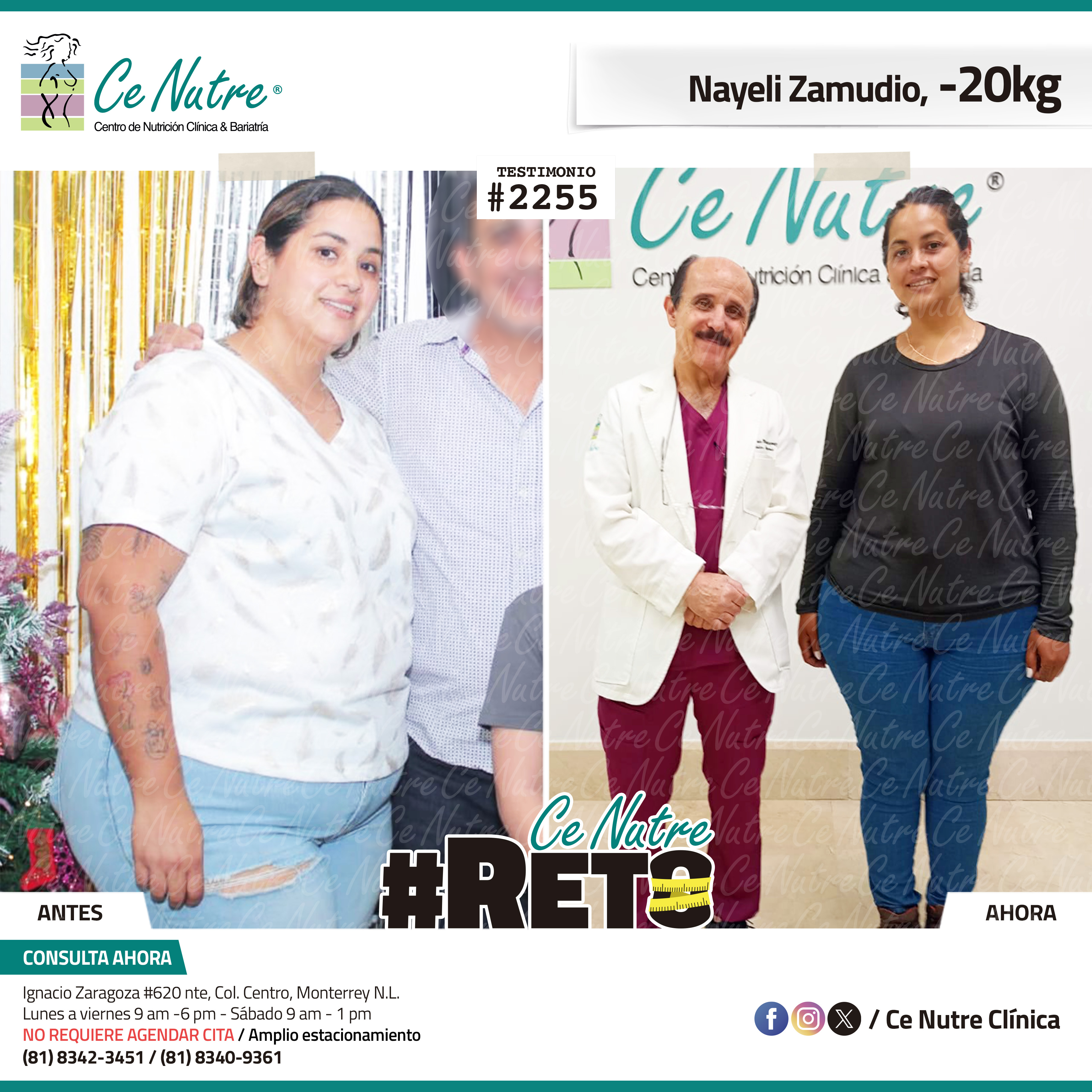 “Yo llegué a Ce Nutre por recomendación de un familiar, pasé por cosas fuertes de salud, una de ellas eran quistes y eso me motivó a hacer un cambio y a amarme más. Agradezco a mi familia por su apoyo y por siempre animarme a seguir.”