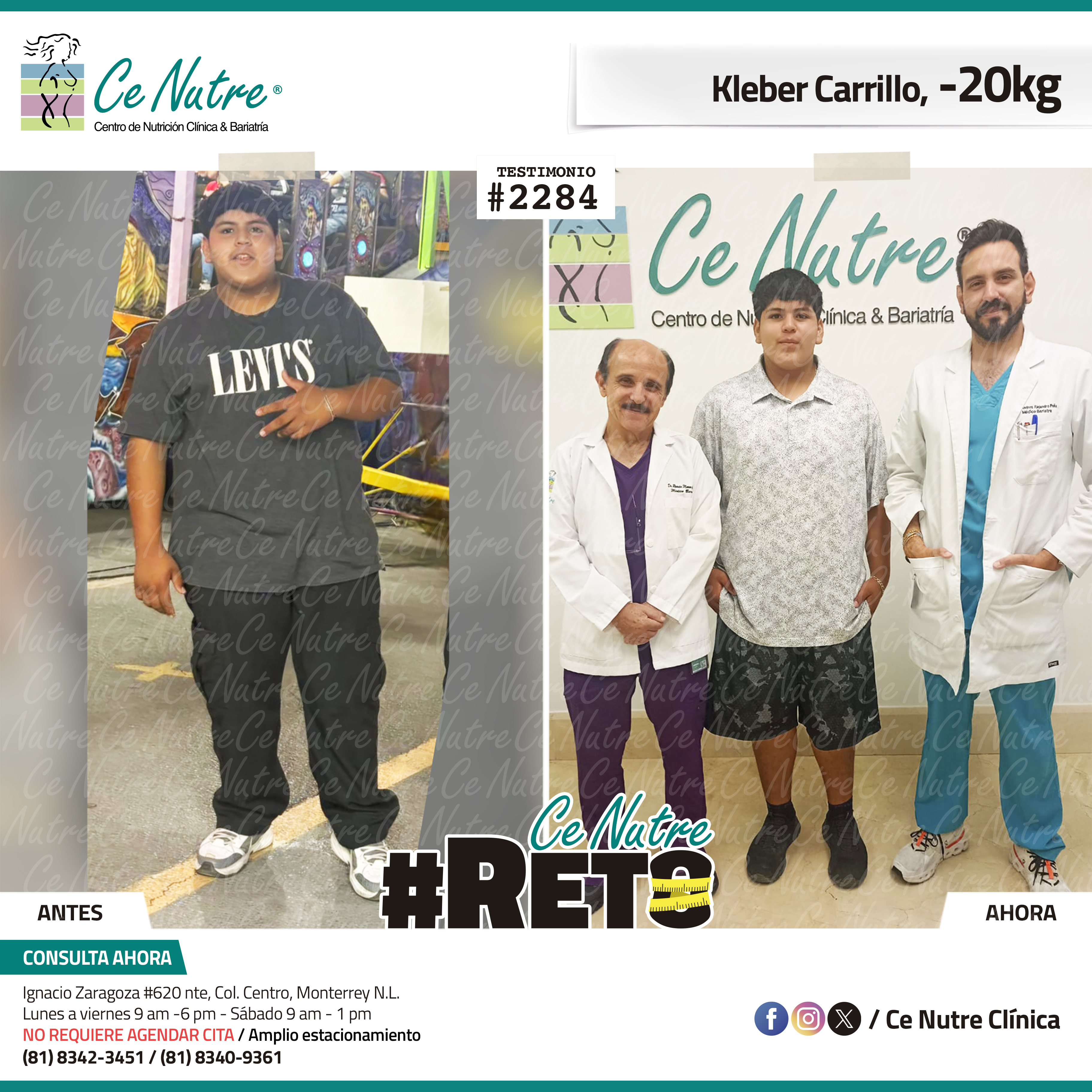 “Mi nombre es Raul yo llegué a Ce Nutre por recomendación de mis papás, me motivó su cambio físico por lo cual quise acudir a Ce Nutre ya que yo era una persona sin energías, y con mucha ansiedad por comer. Le doy gracias a Ce Nutre por llevar mi procedimiento ya que ellos me han ayudado a saber comer sanamente. Yo les recomiendo que acudan a Ce Nutre tanto por un cambio físico como alimenticio. Le doy gracias a Ce Nutre y a los médicos que me han ayudado con este cambio y motivación a seguir adelante, hoy en día me pongo la ropa que me gusta y no la que me queda.”